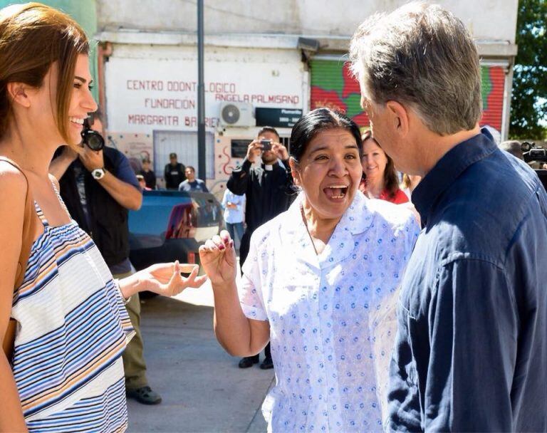 Macri, su esposa y la ministra Stanley caminaron por las estrechas calles que conducen a Plumerillo 3995, donde está ubicado el comedor de Barrientos, que se destaca por su colorida fachada.