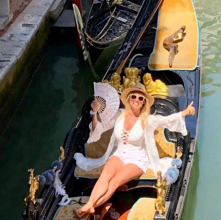 Pero Vicky no perdió sus mañas, y nuevamente volvió a mostrarse con un original atuendo "de viaje". Paseando por Venecia con su hijo Salvador Uriel la rubia lució un impactante body con escote muy pronunciado y se fue a pasear en góndola.
