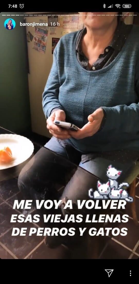 El comentario hizo reír a Jimena, que acotó: "Yo también. Yo estoy encaminada". Jimena compartió un día en familia en el que su mamá cocinó milanesas. Y si bien a la noche intentó salir, contó que se quedó en casa comiendo chocolate y viendo Netflix.