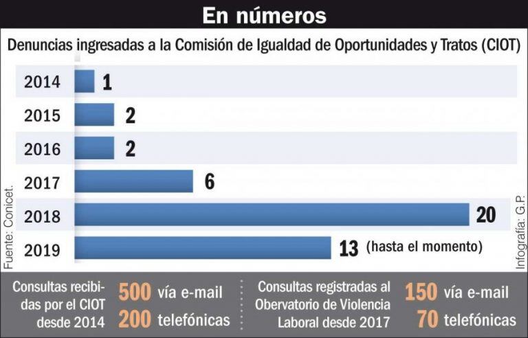 Desde 2017, con la puesta en marcha en ese organismo del "Protocolo de actuación para la prevención, difusión y capacitación en situaciones de violencia en ambientes de trabajo" y la creación de la Comisión Interdisciplinaria del Observatorio de Violencia Laboral, se triplicaron las denuncias formales por violencia laboral y de género ingresadas a la Comisión de Igualdad de Oportunidades y Tratos (CIOT).
