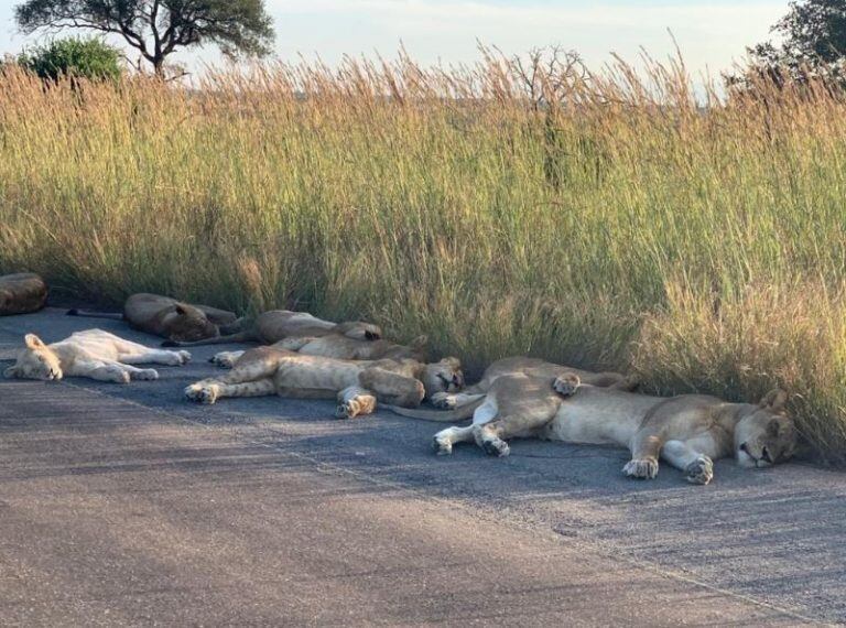 El parque difundió las fotos en su cuenta de Twitter y explicó que los leones residen en un área "que los turistas no ven" y que "estaban tirados en el camino" cerca del campamento de Orpen.