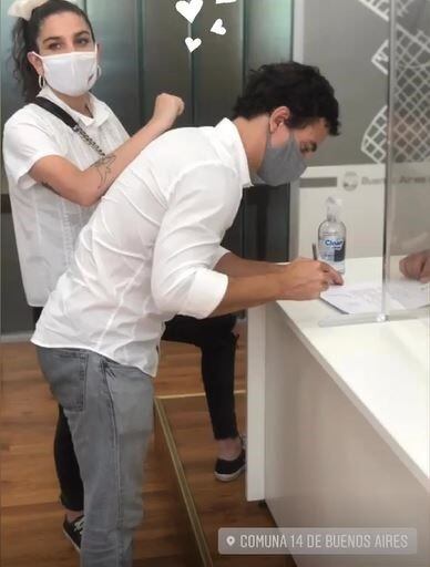 En las fotos se puede ver a la pareja respetando las normas sanitarias, con barbijos y ropa elegante-sport: Graviotto con una camisa blanca, jean y zapatillas, mientras que ella optó por una blusa también blanca y un pantalón oscuro.
