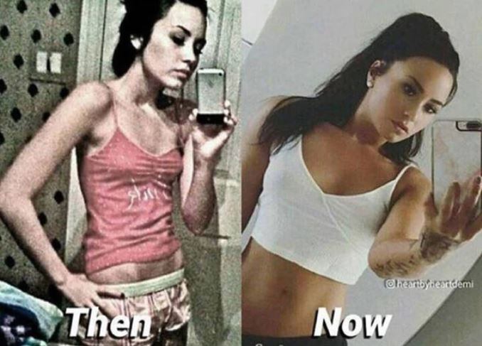 Para demostrar los cambios que atravesó, Lovato compartió una impactante imagen en Instagram en la que muestra cómo era su cuerpo mientras sufría bulimia y cómo es ahora.