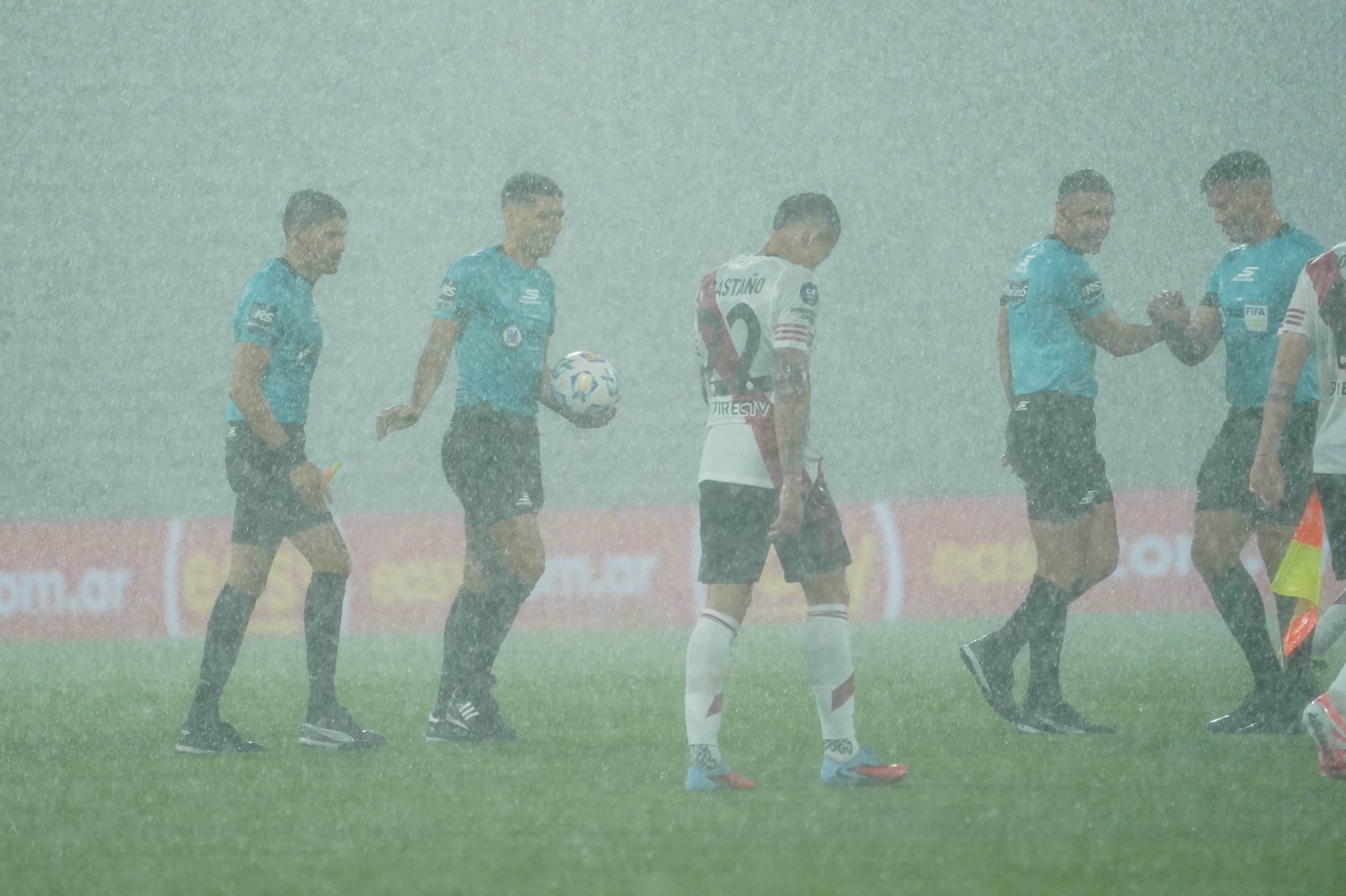 El árbitro Andrés Gariano pidió más tiempo para que mejoraran en lo que se pudiera el campo de juego y la pelota rodara. Pero las áreas, sobre todo la de River, eran lagunas.
