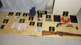 El fiscal luego del interrogatorio decidió que continúe detenido. En el procedimiento de la FPA se procedió al secuestro de 300 dosis de marihuana lo que totalizó unos 350 gramos y dos pequeños envoltorios de cocaína (dos gramos). Además un revólver calibre 32 con caño y cuerpo cromado y una carabina calibre 22 además de proyectiles calibre 9 milímetros,
