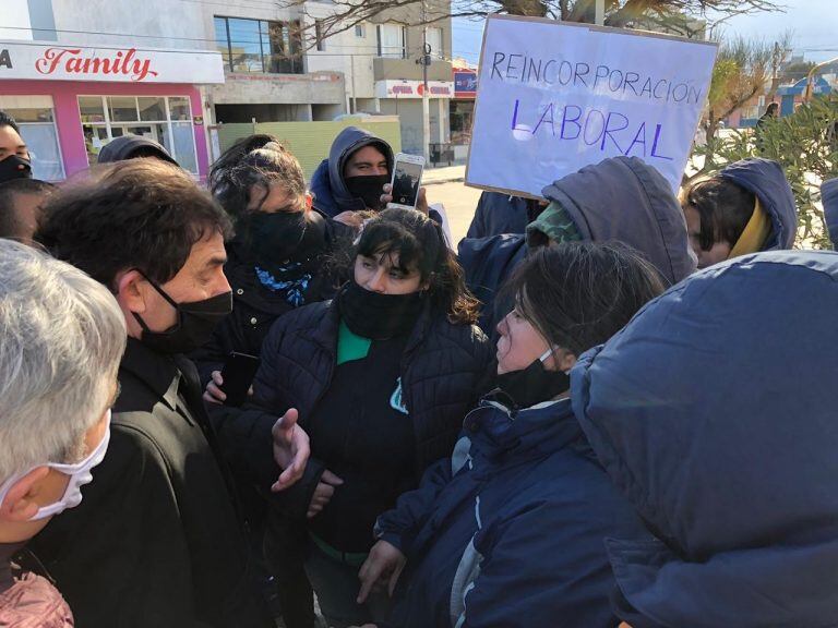 El Intendente Fernando Cotillo fue abordado por los manifestantes y dio intervención al Secretario de Coordinación General Juan Carlos Gómez, quien respondió los reclamos y los convocó a un posterior encuentro para dialogar y buscar una salida al conflicto.