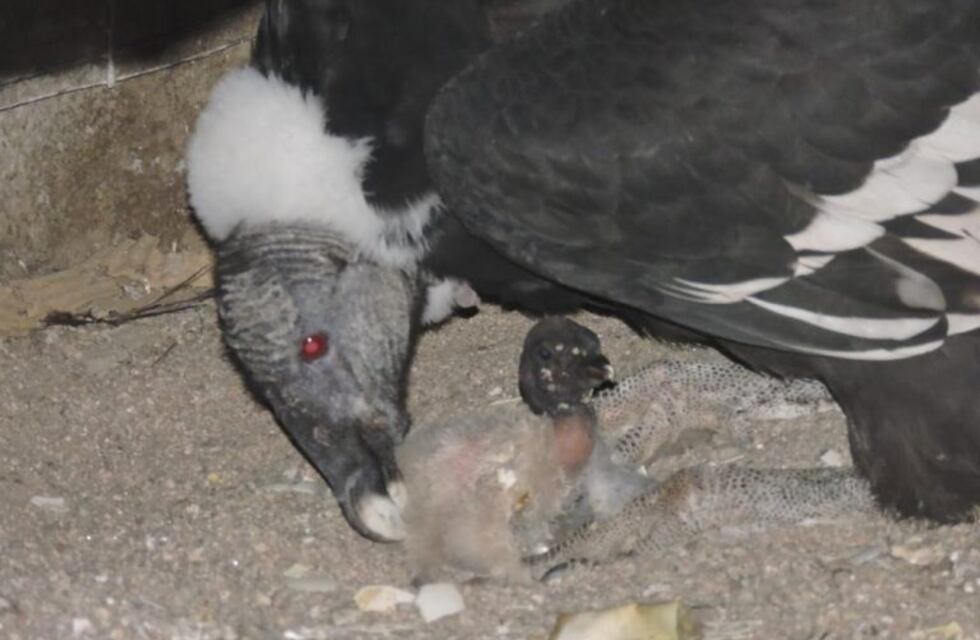 El pequeño recién nacido, es hijo de dos cóndores que perdieron la capacidad de volar por lesiones de bala en sus alas.