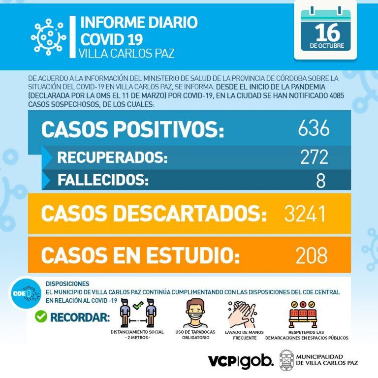 Desde el inicio de la Pandemia (declarada por la OMS el 11 de marzo) por coronavirus, en la ciudad se han notificado 4085 casos sospechosos, de los cuales 636 han dado positivos, se han 272 recuperados y ocho fallecieron. Se aguarda el resultado de 208 muestras.