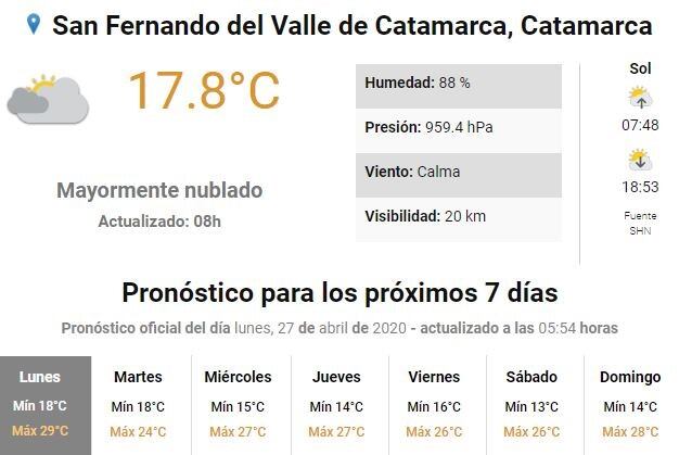 Llegó una nueva semana y el lunes en Catamarca amaneció con cielo cubierto. Se esperan lluvias a los largo de la jornada y mucha humedad.