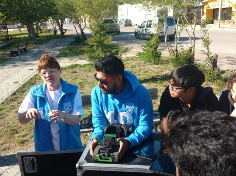 En Río Mayo el laboratorio se instaló en la plaza principal y los chicos de las escuelas del lugar ya se acercaron para conocer las herramientas tecnológicas. Durante la tarde el laboratorio está abierto para que toda la comunidad pueda experimentar también con el equipamiento.