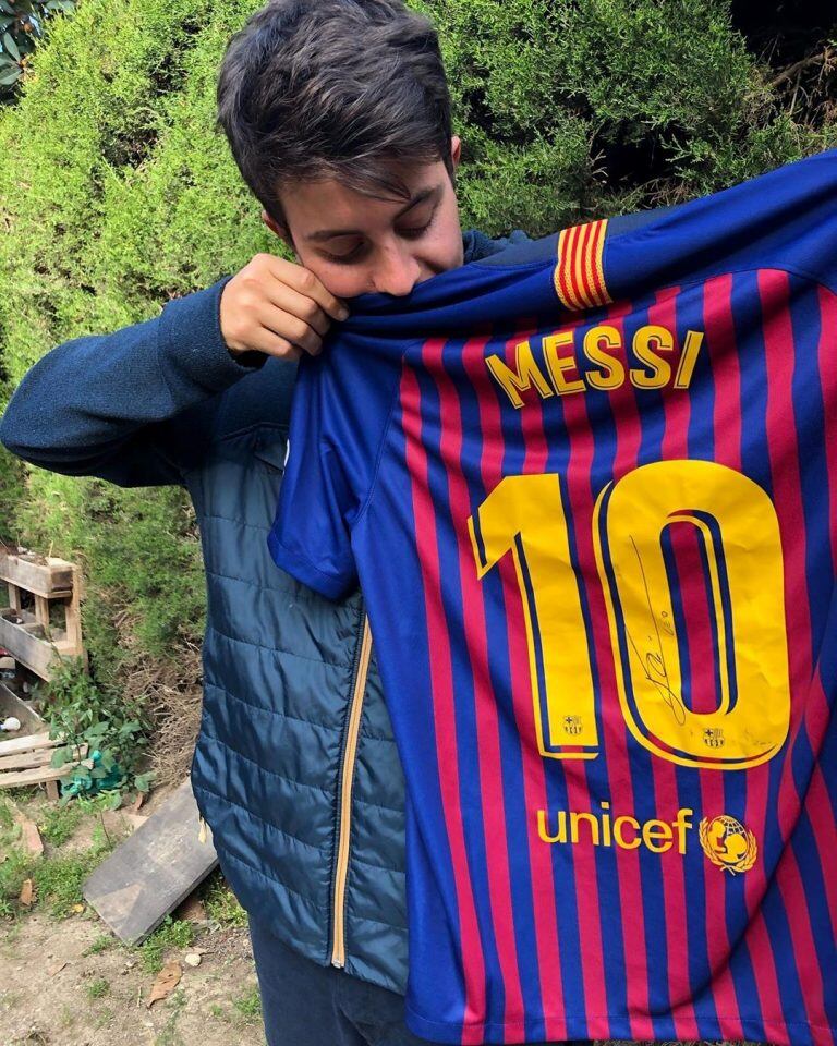Santi logró conocer a Lionel Messi, en una de las calles cercanas a la Masía del Barsa y logró sacarse una foto con el astro argentino y mejor jugador del mundo quien además le firmó una camiseta y hasta lo reconoció como "cordobés".