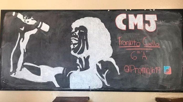 Hace un par de meses atrás, una mañana de septiembre, fue más temprano a la escuela donde transita el último año del secundario. Tenía en su celular una foto de La Mona Jiménez, su ídolo, y comenzó a dibujarlo en el pizarrón de la cantina. Hoy, su tributo al cuartetero, con tiza blanca permanece inalterable.