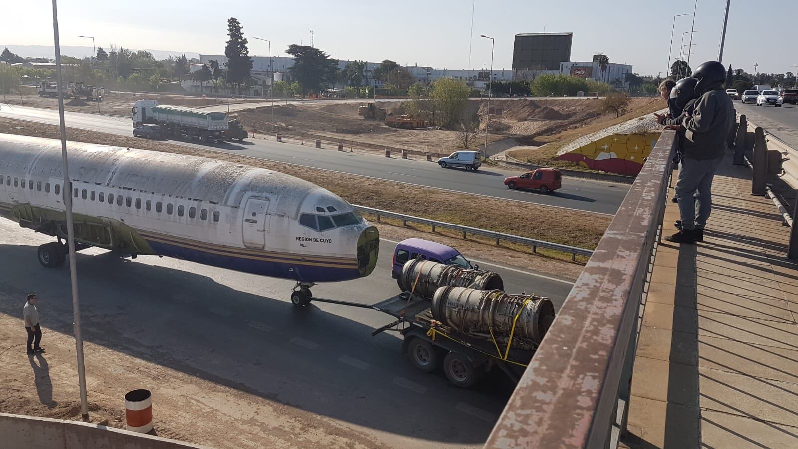 Este martes, el avión fue desarmando y distribuído en tres camiones para su traslado. Según explicó Oscar Scorza, dueño del mismo, a Mitre 810 una grúa llevaba el motor y el avión; otra las alas y otra, las partes restantes. Sin embargo, cuando intentaron cruzar por uno de los puentes, el Boening quedó atorado y provocó demoras en el tránsito hasta que pudo ser destrabado y desvió su ruta.