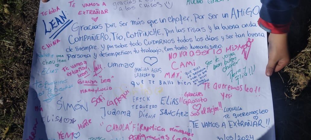 Este viernes, alumnos, alumnas, madres, padres y otros pasajeros de Leandro le organizaron una emotiva despedida que lo tomó por sorpresa. “El cariño es impresionante. La verdad que no me lo esperaba”, cerró el conductor que recibió una carta con el mensaje “gracias por ser más que un chofer y cuidarnos”.