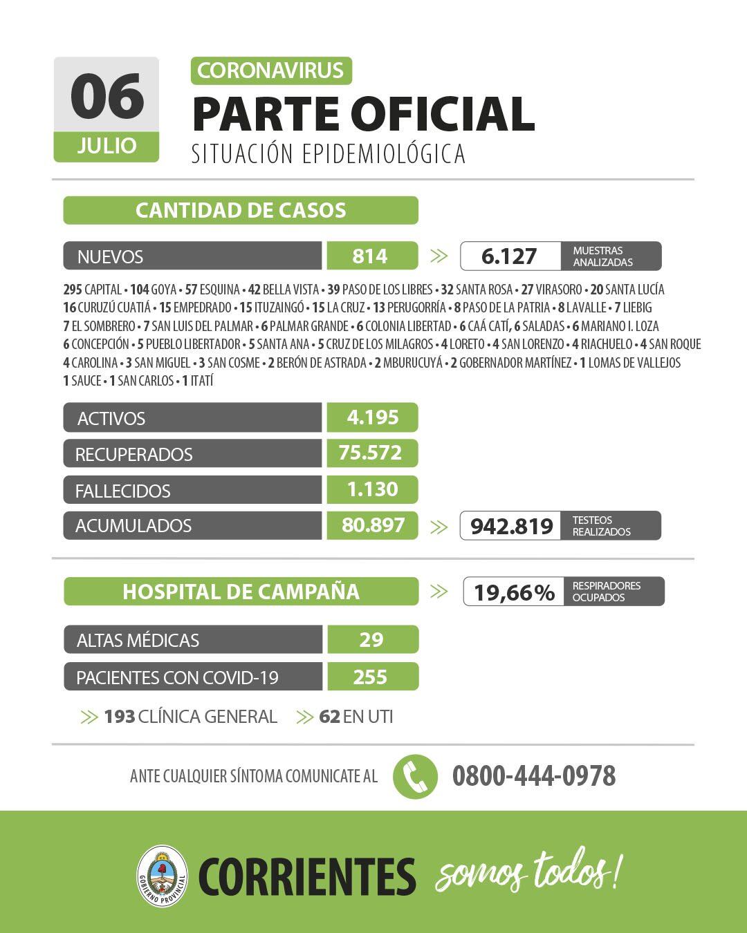 Este martes el parte diario de epidemiología volvió a mostrar un considerable ascenso de contagios en la provincia, 814 con nueve fallecimientos en las últimas 24 horas. Son 1.130 los decesos registrados desde el inicio de la pandemia en marzo de 2020.