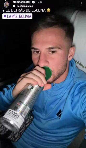 El primero en develar el particular método fue Alexis Mac Allister, quien a través de stories de Instagram mostró el envase y escribió: “El detrás de escena”, junto con la ubicación para confirmar que se encontraban en el altiplano.