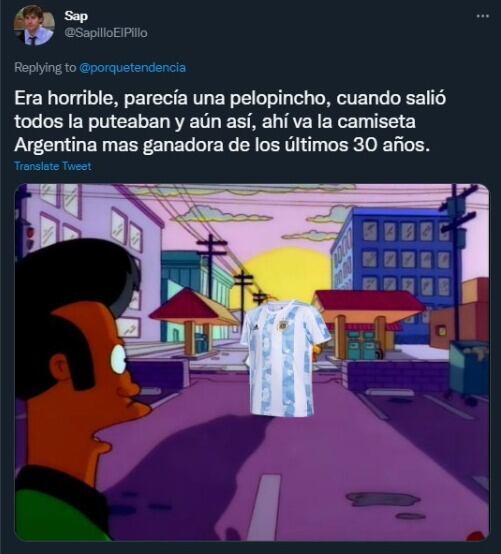 Como es tendencia en las redes sociales, los usuarios no tardaron en aprovechar la situación para hacer todo tipo de “memes” sobre la nueva camiseta y la despedida de la anterior edición de la celeste y blanca; la cual ya es recordada como el uniforme del equipo invicto que dirigió Lionel Scaloni.