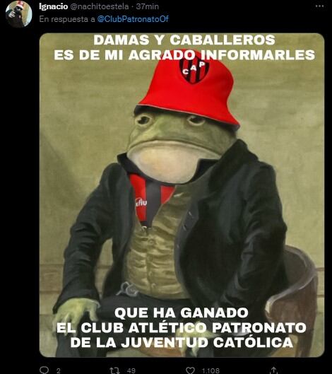 Los memes y reacciones se hicieron presentes en las redes, principalmente de hinchas de Belgrano que se burlaron de su rival de la ciudad, al que enfrentarán el año que viene en la máxima categoría. La cuenta oficial de Twitter rápidamente felicitó al Patrón y las gastadas no tardaron en llegar.