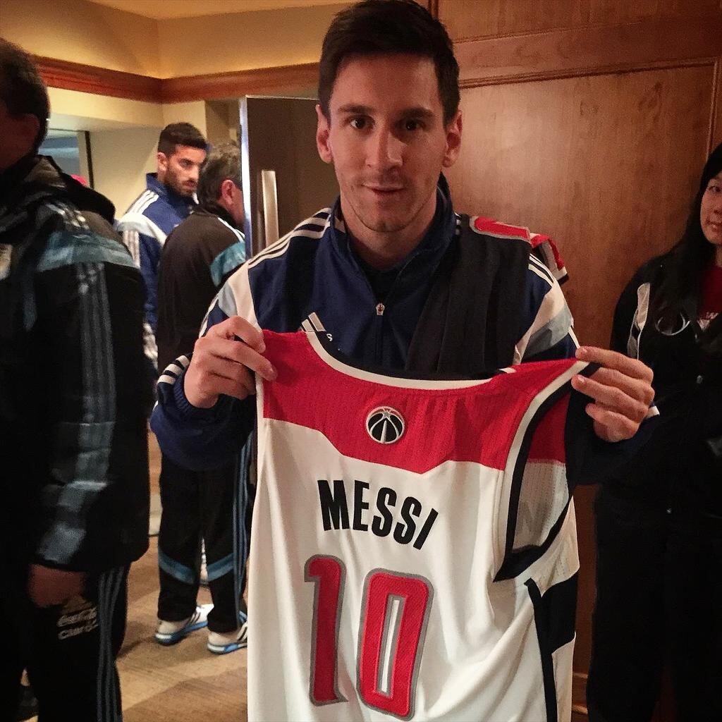 Uno de los primeros acercamientos de Messi con la NBA fue durante la Copa América 2015, cuando la Selección Argentina presenció un partido en el Verizon Center de Washington D.C. entre Wizards y Pacers.