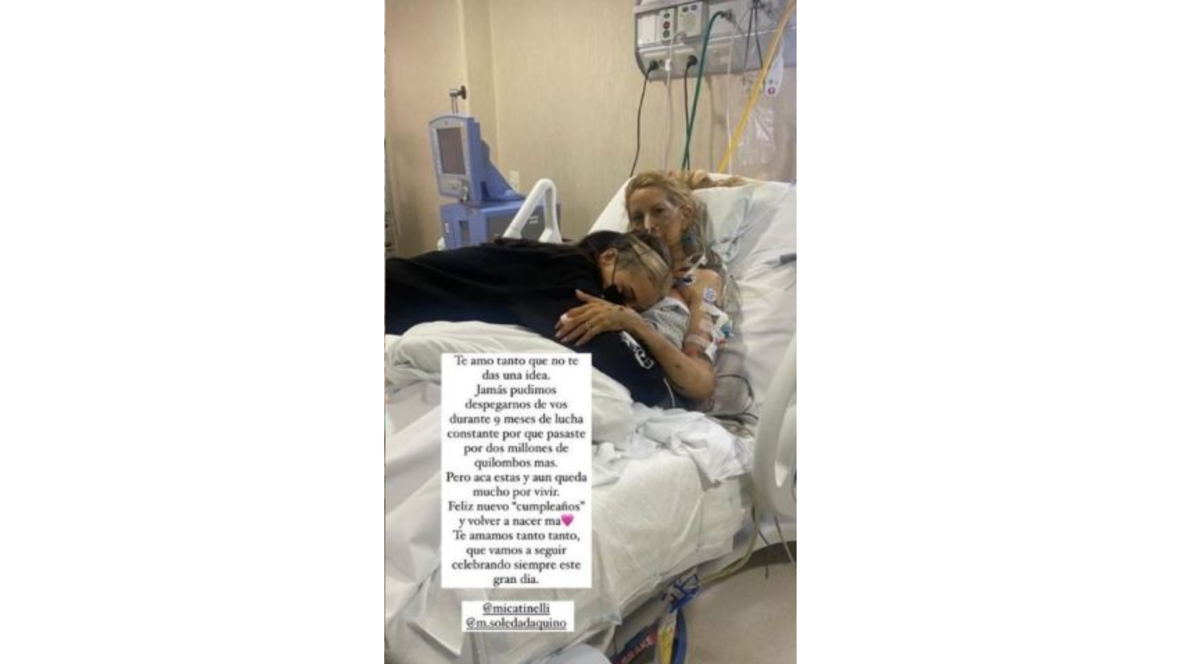En el tercer aniversario de la operación, Cande y Mica Tinelli compartieron en redes sociales fotos y recuerdos de esos momentos en la clínica. “Feliz nuevo cumpleaños y volver a nacer, ma. Te amamos tanto y vamos a seguir celebrando siempre este gran día”, escribió Cande. Mica, por su parte, expresó: “Solo puedo sentir agradecimiento”, acompañando sus palabras con imágenes que reflejaban la larga y ardua internación de su madre.