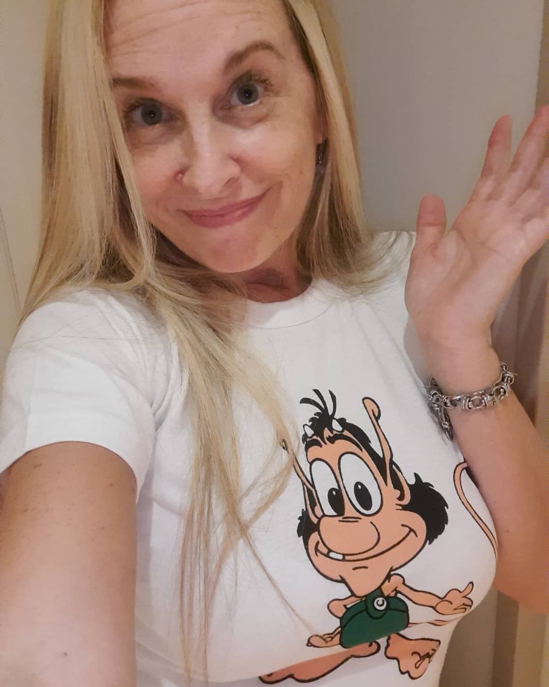 “Y así de la nada me acabo de acordar que hoy hace 25 años empezaba a jugar con Hugo, años felices, grandes recuerdos y todavía hoy recibo más cariño del que pude haber imaginado”, escribió la exconductora en su cuenta de Instagram donde se la ve con una remera del mítico personaje.