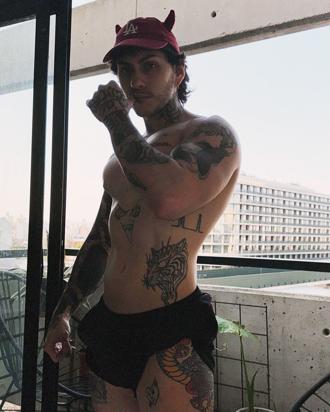 “Hermano, estoy confundido”, escribió en el pie de foto y compartió cinco fotografías, que dan cuenta de su cambio físico. El joven se fotografió sin remera, con un minishort, con musculosa y realizó diferente poses para mostrar su musculatura.