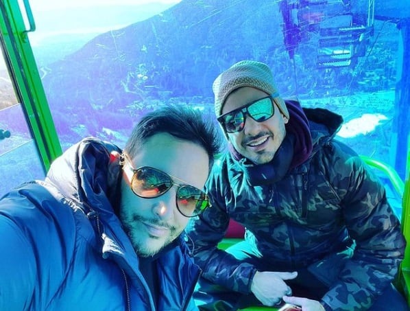 “Nosotros, sábado, amor”, escribió el conductor de “Socios del espectáculo” (eltrece) en el pie de la publicación en la que se lo ve junto a Kildoff desde un balcón en Lomas de Zamora.