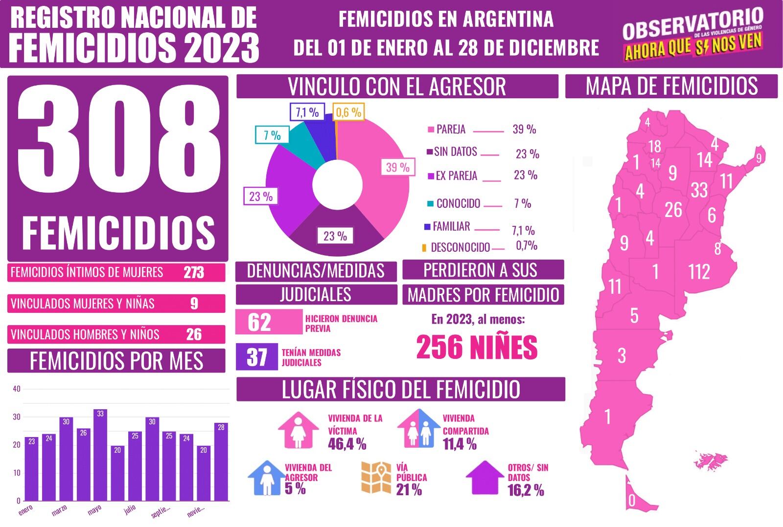 El observatorio de violencias de género de la asociación “Ahora que sí nos ven” publicó el relevamiento de muertes que se registraron durante 2023: fueron un total de 308.