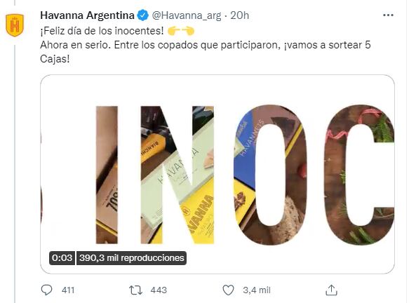 Pero tres horas más tarde, Havanna lanzó otro tuit donde mostraba que su oferta había sido solo una broma: “¡Feliz día de los inocentes! Ahora en serio. Entre los copados que participaron, ¡vamos a sortear 5 Cajas!”.