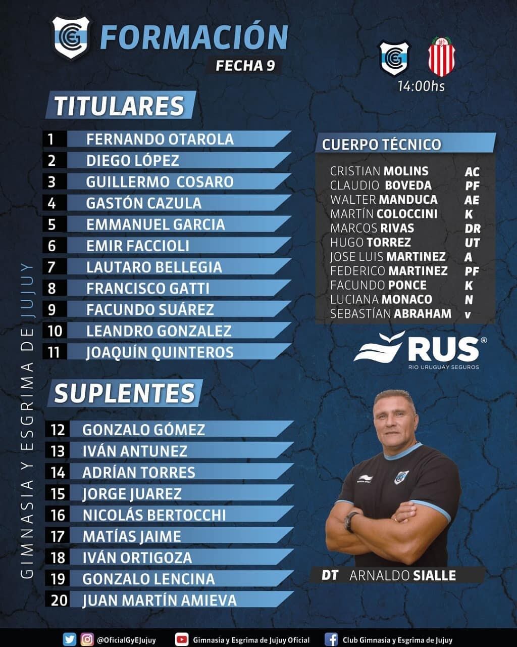 Gimnasia y Esgrima de Jujuy: Fernando Otarola, Gastón Cazula, Diego López, Emir Faccioli y Guillermo Cosaro; Francisco Gatti, Emmanuel García, Lautaro Bellegia y Joaquín Quinteros; Leandro González y Facundo Suárez. DT: Arnaldo Sialle.