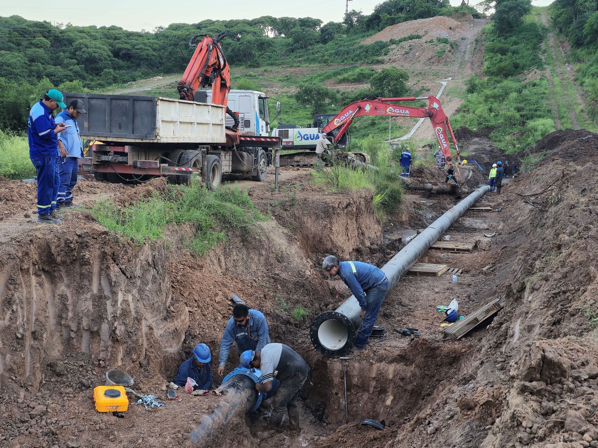 Con el fin de procurar “una solución definitiva” a un problema que se había tornado crónico en el acueducto principal que abastece a los populosos barrios Sargento Cabral y Alto Comedero, en la zona sur de la capital jujeña, un equipo dispuesto por la empresa estatal Agua Potable de Jujuy concretó un operativo de gran envergadura técnica que requirió el trabajo de más de treinta personas con maquinarias pesadas e instrumental específico para la tarea.
