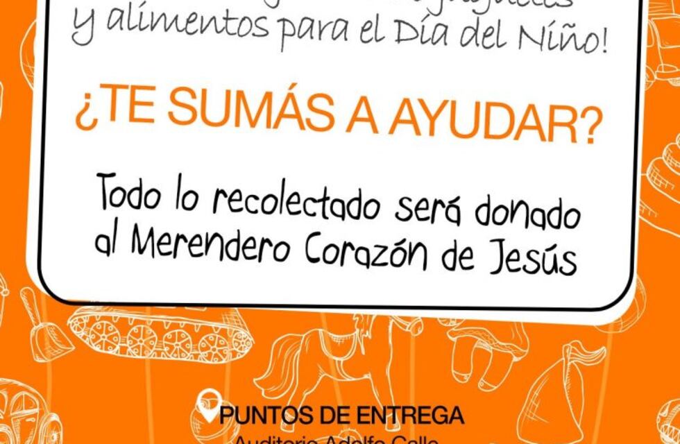 Vía Mendoza quiere aportar su granito de arena y hacer que este Día del Niño sea especial para los chicos del Merendero Corazón de Jesús, ubicado en la Ruta 40 de Las Heras. Si querés ser parte de este proyecto podés acercar tus donaciones al Auditorio Adolfo Calle, en Primitivo de la Reta 1042, Ciudad, de 8.30 a 15hs.