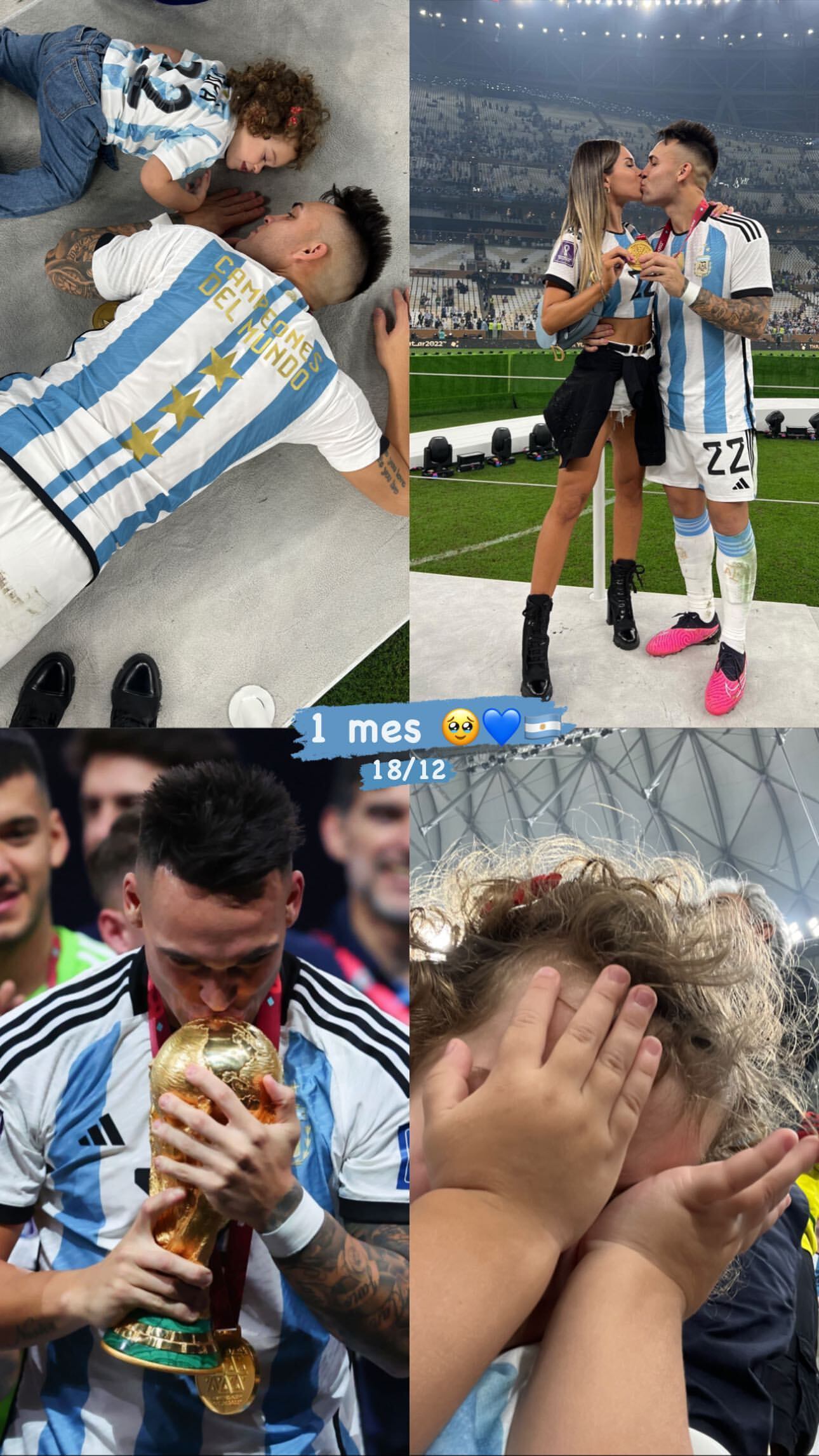 La mendocina compartió varias postales de los emocionantes momentos que vivió junto a Lautaro Martínez y su hija Nina. “1 mes, 18/12″, escribió seguido de un emoji de un corazón y una carita emocionada haciendo alusión al emotivo momento.