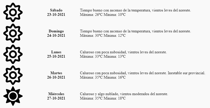 Ya para el martes y miércoles la máxima prevista será particularmente alta, llegando a 35º en ambas jornadas, Las mínimas, en tanto, oscilarán entre los 16º y los 18º y las condiciones para ambos días se prevén como calurosas y poca nubosidad. Es decir que estos dos días consecutivos con picos previstos de 35º, además, habrá una importante radiación solar.