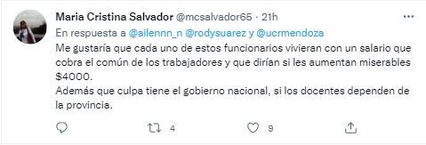 Además, muchos adjuntaron como prueba cifras importantes que corresponderían a los sueldos de los funcionarios, muy lejos de la realidad de los docentes y celadores de Mendoza.