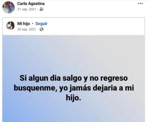 Previo a enterarse de la muerte de su nieta publicó el 5 de julio “Ago a dónde estás hija te estamos esperando con tu pollito. Estamos desesperados por favor”, junto al pedido de compartir para encontrarla.