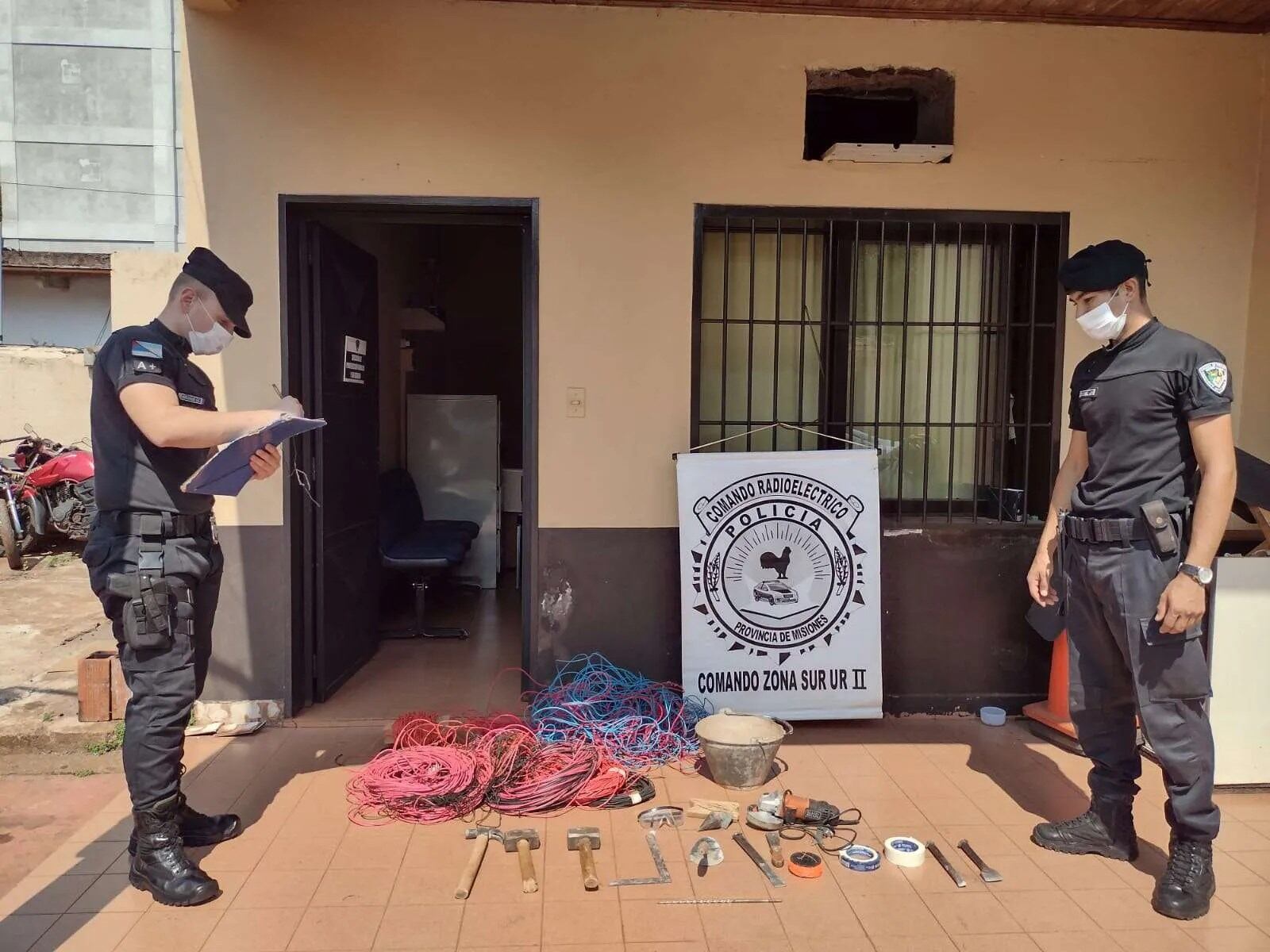 En inmediaciones del lugar también secuestraron una amoladora, dos martillos, cuatro corta-hierro y un balde, que posteriormente fueron reconocidos por el damnificado. En ese momento, se conoció mediante su denuncia que desconocidos les sustrajeron estas herramientas desde una edificación ubicada en calle El Mensú.