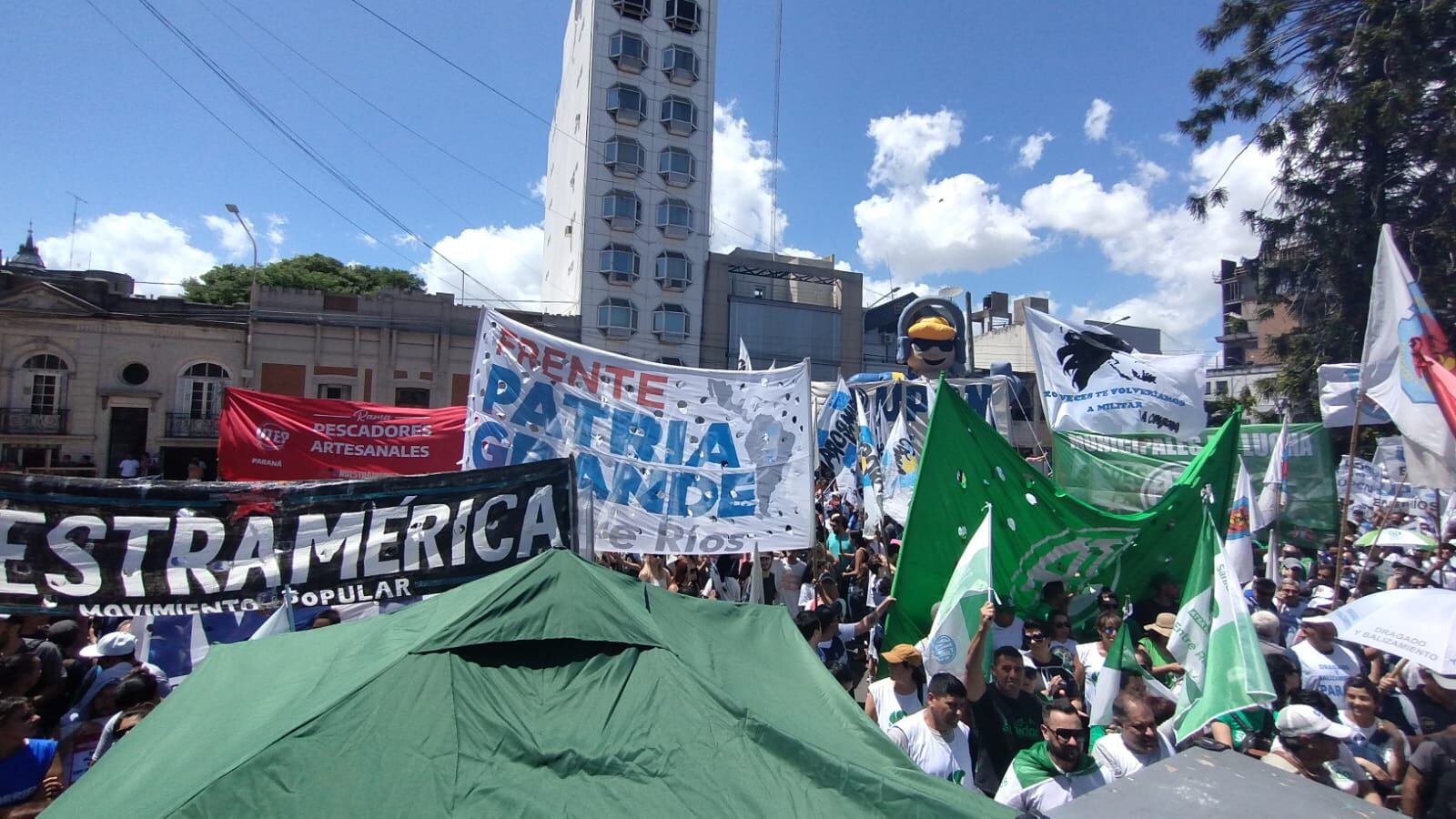 La marcha se realizó en la plaza en donde se ubica la Casa Gris, lugar en donde en las primeras horas de la jornada, el gobernador Rogelio Frigerio brindó una conferencia de prensa luego de concluir su agenda del martes en Buenos Aires donde se reunió con el ministro del Interior Guillermo Francos y el colaborador presidencial Santiago Caputo.