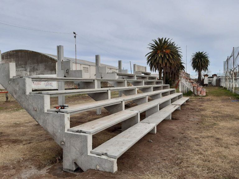 La pandemia y el receso no detienen las obras en el club Sporting. Esta semana finalizó la colocación del primer tramo de la tribuna visitante en el estadio Enrique Mendizábal.