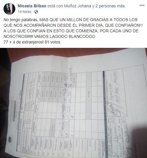 El domingo por la noche, Bilbao agradeció en sus redes sociales a aquellos que la apoyaron durante su campaña y las elecciones. ''Más que un millón de gracias a todos los que nos acompañaron desde el primer día, que confiaron. A los que confían en esto que comienza, por cada uno de nosotros'', manifestó.