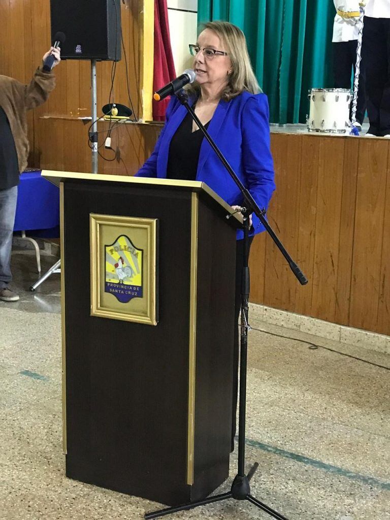 Ante la presencia de agentes de las distintas áreas de Policía de Santa Cruz, sus familias, la comunidad en general, funcionarios provinciales, municipales y legisladores de toda la provincia, Alicia manifestó su emoción por celebrar por primera vez en Caleta Olivia el aniversario de una fuerza que cumple 134 años de vida como institución.