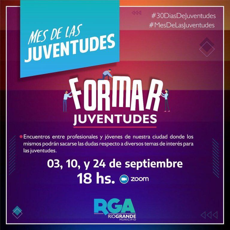 Una de las propuestas establecidas para las iniciativas del Mes de las Juventudes, es el de "Formar Juventudes", por el cual se pretende, que los jóvenes de la ciudad, puedan conversar con profesionales sobre temáticas de su interés y así, eliminar las dudas que tengan.