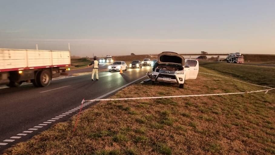 A primera hora de la jornada, la policía realizaba un operativo de tránsito en el lugar para ordenar la circulación. Una camioneta Toyota Hilux quedó sobre el cantero central como uno de los vehículos involucrados en el siniestro vial.