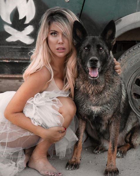"Estos lindos chicos quisieron posar conmigo", escribió Wanda en una de las imágenes, junto a dos perros que andaban por ahí.