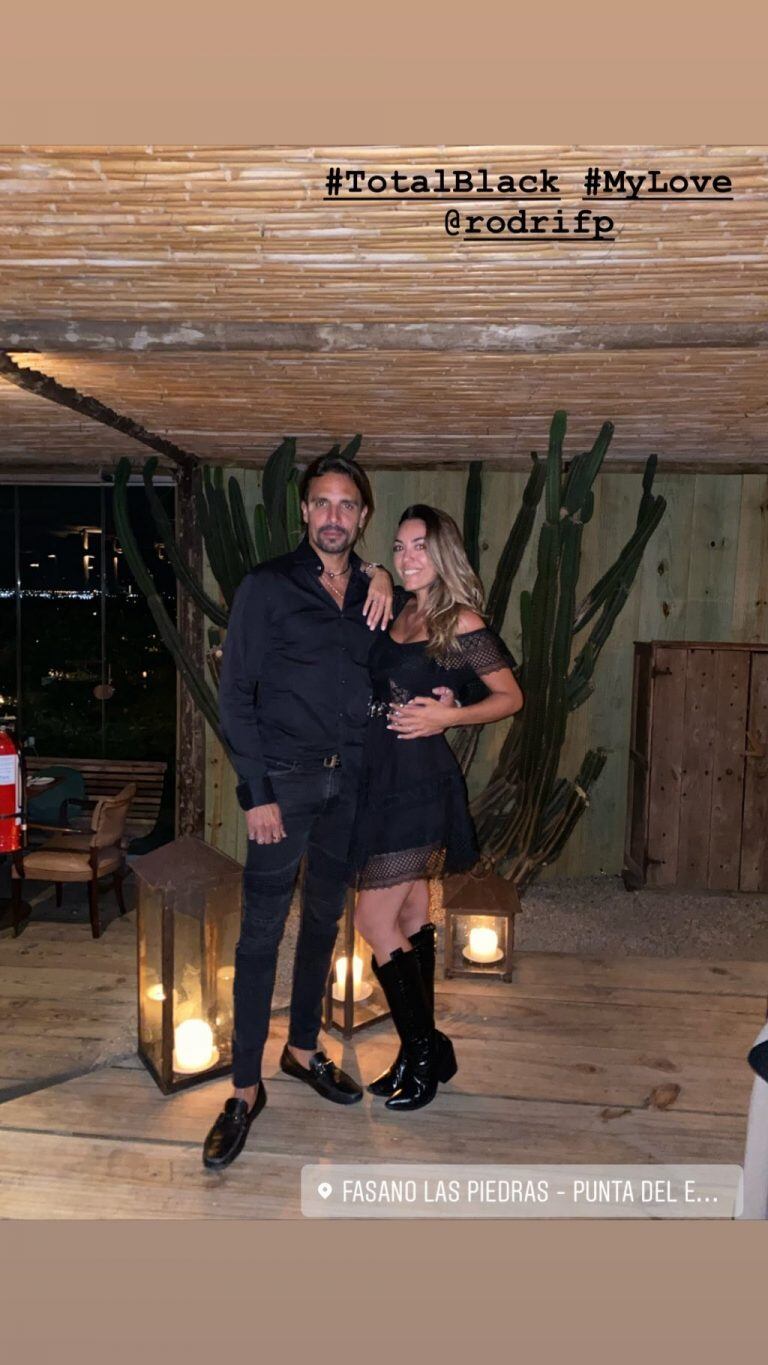 Pero también la pareja aprovechó para compartir tiempo solos. La panelista mostró en sus Stories que ambos acudieron a una fiesta con un look total black.