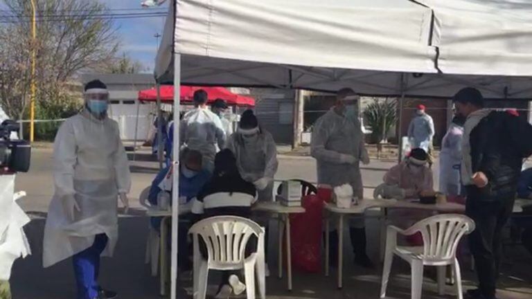 Se armaron gazebos que permitirán al personal de salud realizar más de 300 hisopados preventivos, luego de la aparición de los dos casos positivos este último fin de semana.