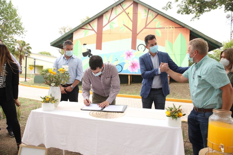Otro convenio de las mismas características se firmó con la jefa municipal de Colonia Vignaud, Evangelina Laura Vigna, para la obra del cerramiento del polideportivo, luego el vicegobernador se trasladó a la localidad de Porteña, para supervisar con el intendente Carlos Baigorria y el de San Francisco, Ignacio García Aresca, las obras del nodo digital para la región.