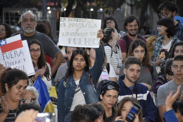 Los autoconvocados son ciudadanos chilenos que viven en la provincia hace décadas y desde su lugar apoyan a familiares que aún viven en el país trasandino. También acompañaron compatriotas en apoyo a la lucha.