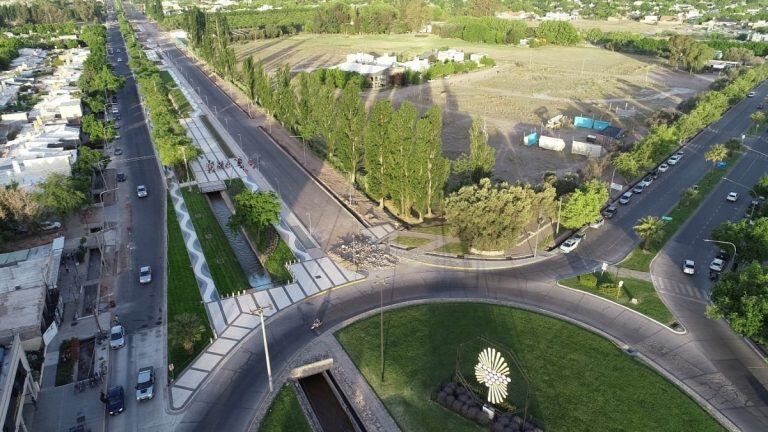 Los trabajos en la nueva avenida Rawson avanza a ritmo sostenido. Por estas horas obreros municipales trabajan en el parquizado a lo largo de los 600 metros del paseo que va desde la rotonda del Mapa y la emplazada en Rivadavia.