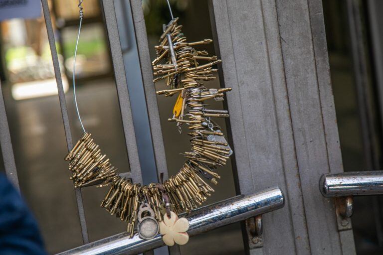 El punto cúlmine de la protesta fue cuando los comerciantes colgaron en la puerta del municipio un manojo de llaves simbolizando que entregaron los comercios para que la Municipalidad se haga cargo, tal como lo habían adelantado en la convocatoria.